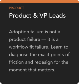 Most organizations respond to low adoption by generating more demand, more marketing, more sales, more awareness. The behavioral evidence is clear: adoption is not a commercial or training problem. It is a workflow problem. The demand already exists. It is being lost at the point of use.